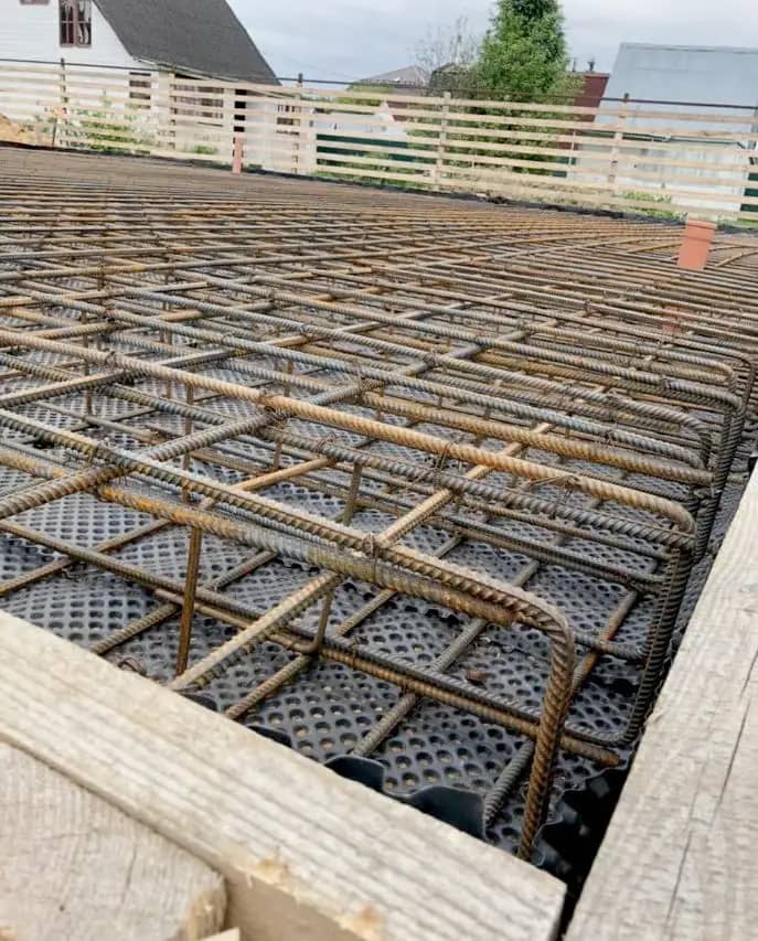 Устройство арматурного каркаса в два уровня ячейкой 250х250 мм.