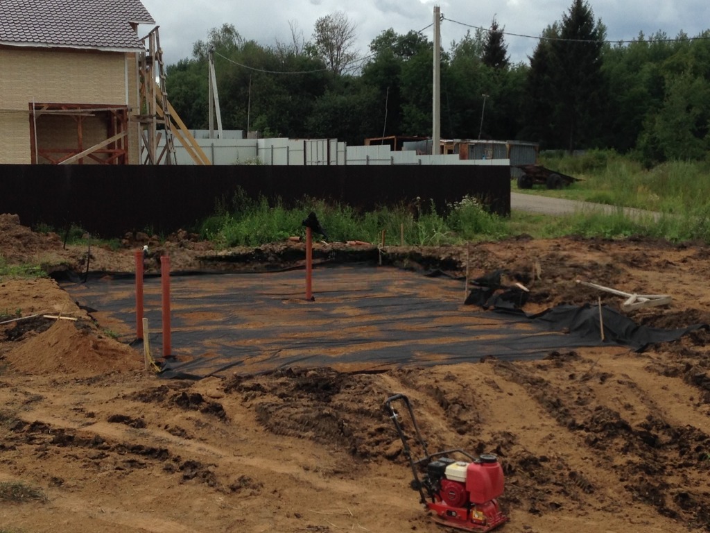 Утепление основания пенополистеролом толщиной 5 см под фундаментом.